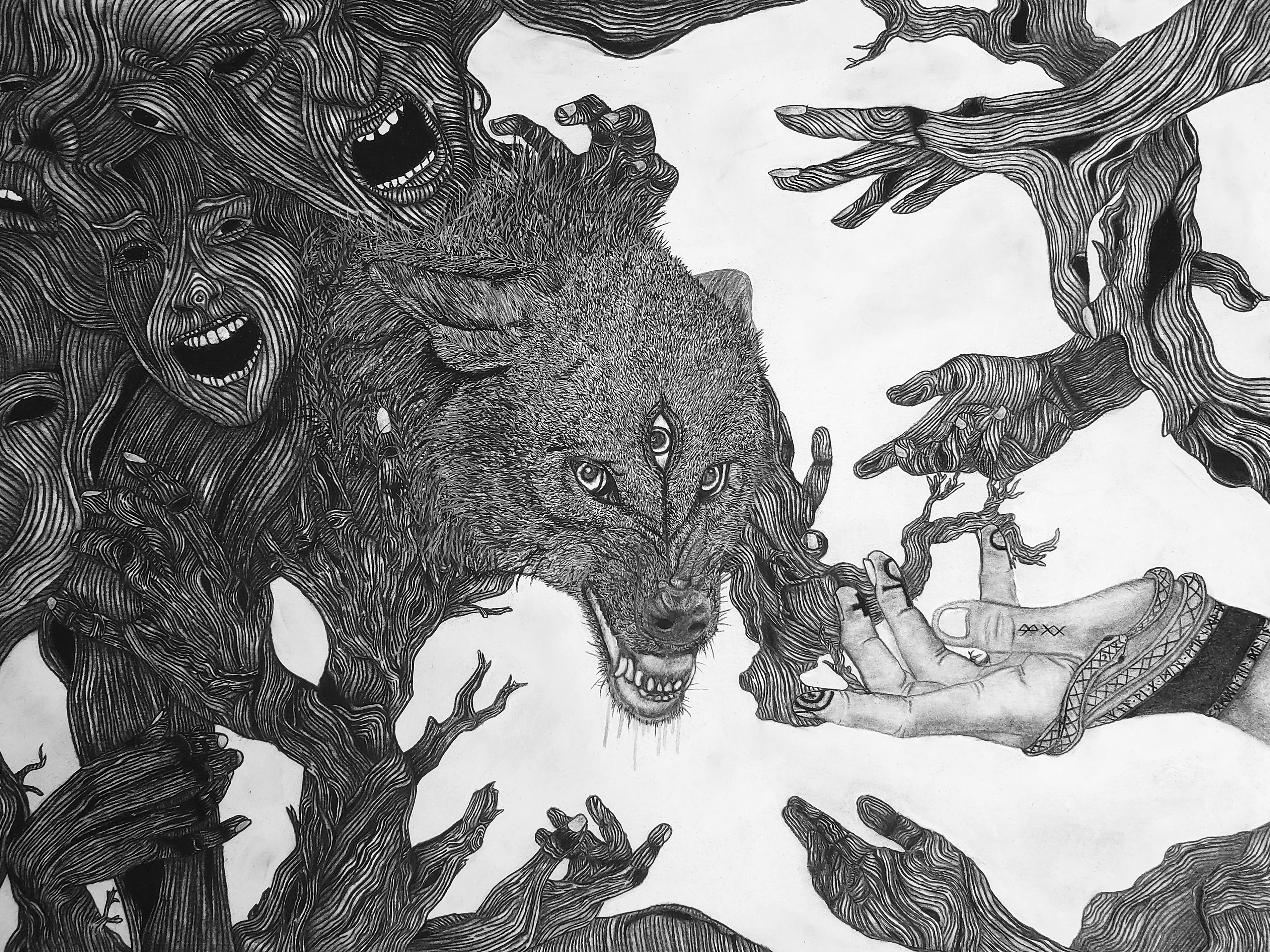 A surrealist series that explores the deep spiritual connections between animals and the natural world. Each drawing captures the essence of creatures like wolves, birds, and other wildlife, blending vivid color theory and dreamlike abstraction. Through symbolic elements like the third eye, these animals embody transformation, guardianship, and emotional depth, inviting viewers to reflect on the untamed forces that shape both nature and the human spirit.